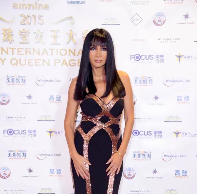 图片说明:2015年,温哥华,张咪担任奥秘纳国际珠宝女王大赛评委团主席。