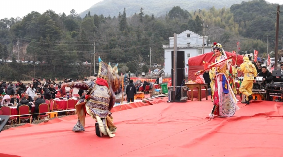 近日,黄岩区北洋镇五尖山村一场别开生面的“年猪宴”热闹开席。与往年不同,一场充满青春气息的非遗戏曲盛宴也同步走进山村,让我们一起走进五尖山村,感受小山村里焕发的青春活力与文化暖意。